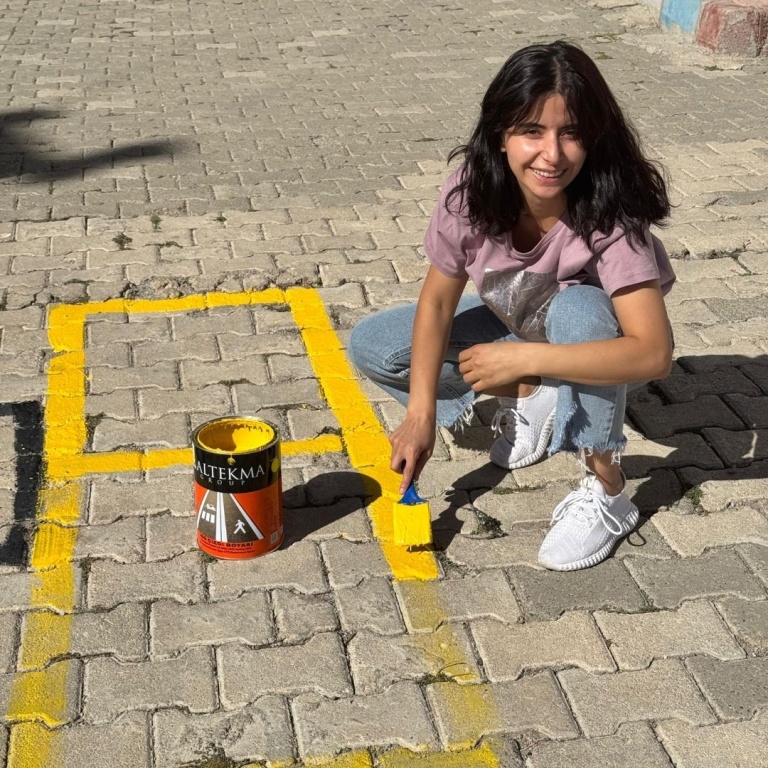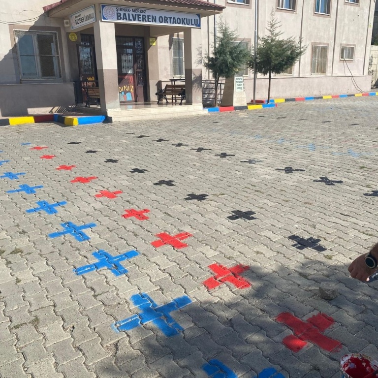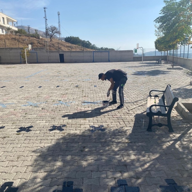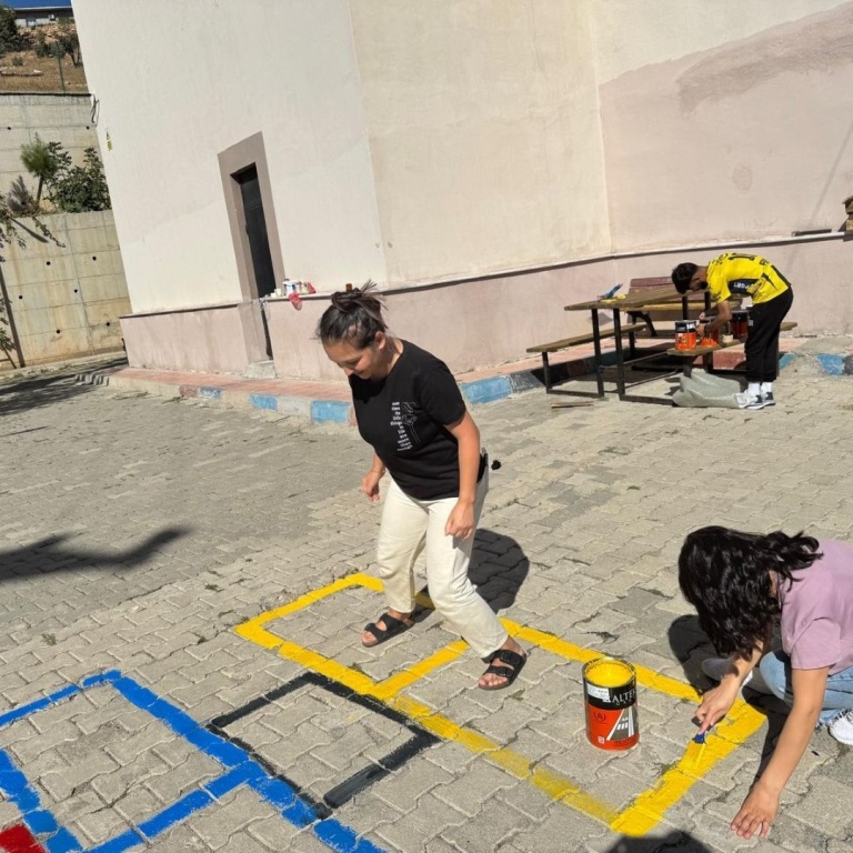 Okul Bahçesine Oyun Çizgilerinin Çizilmesi